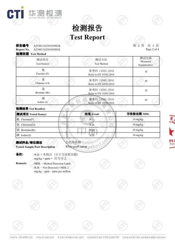 中麗包裝珍珠棉鹵素檢測報告
