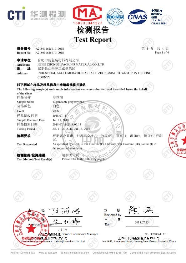 [導讀]中麗包裝珍珠棉產(chǎn)品均經(jīng)過專業(yè)嚴格的檢測,確保產(chǎn)品達標!